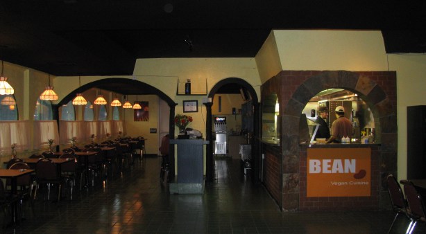 “Here” is 3001 E. Independence Boulevard, a 4,878 SF building that began its restaurant career in 1976 as El Cancun, a Mexican restaurant (that coincidentally served many vegetarian items). After that it went through several more restaurant incarnations – a deli, the Kilimanjaro Restaurant & Lounge – before becoming Bean. The building still retains a hint of its Mexican past, with rounded arches everywhere.