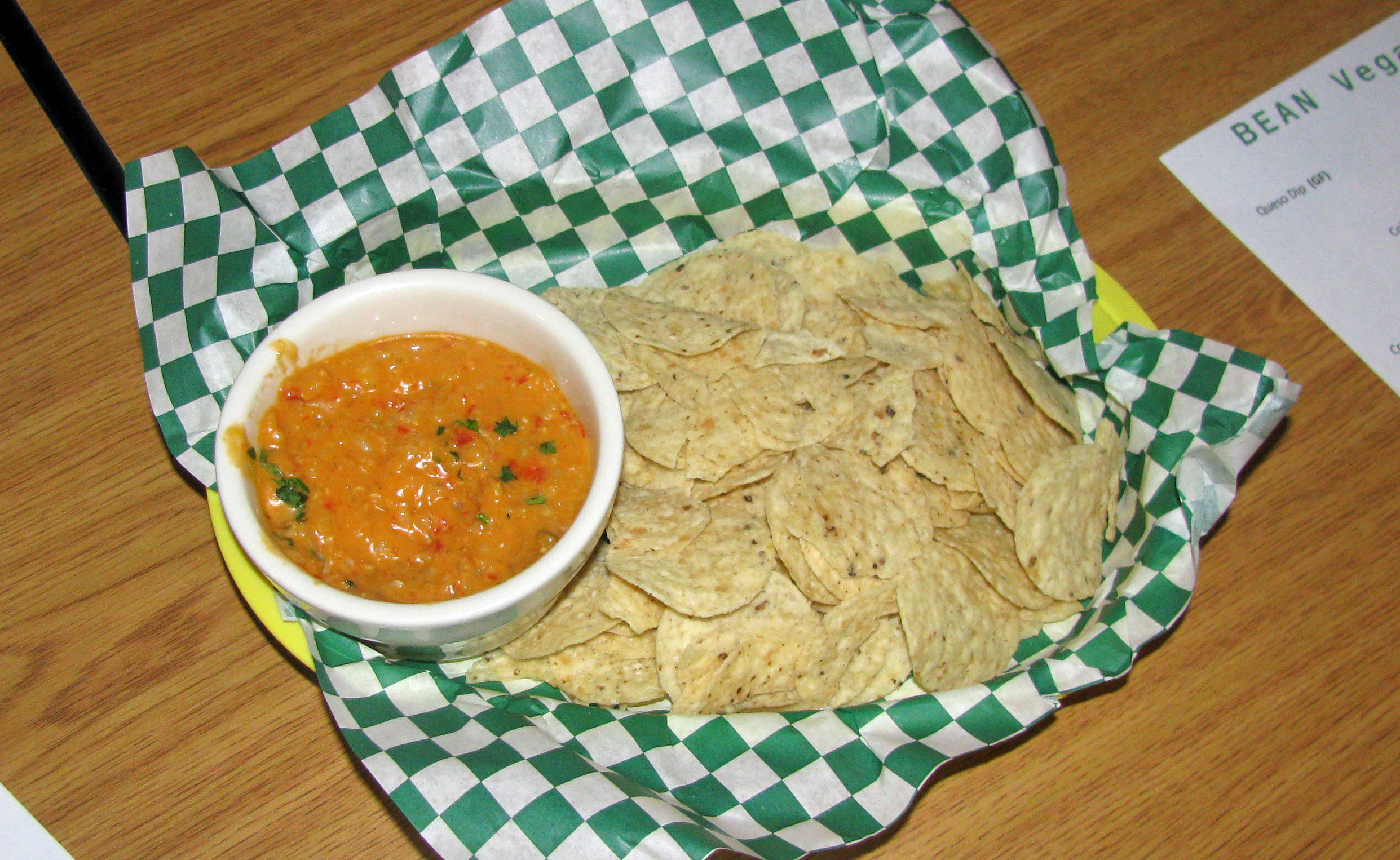 There’s also a nice bar area. Charlie and Roy are still waiting on their liquor license, and plan to serve vegan wines, beers, and liquors. I’m really loving the idea of a vegan bar, especially when paired with familiar bar appetizers. So far Bean has queso dip, quesadillas, crabby dip, and buffalo fingers on their “starters” menu. If Bean adds the fried pickles they sometimes serve as a special, and maybe some nachos – they could seriously be onto something.