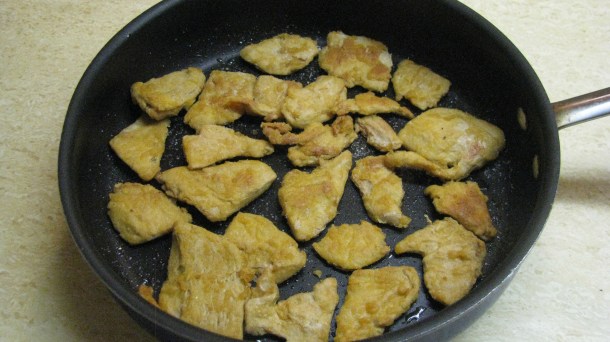 It really is quick and easy (although it took me a little longer than 8 minutes). You simply heat some oil in a pan, add the chick’n pieces, and heat until brown and crispy on both sides. I must say, the chick’n pieces really did look amazingly like chicken.