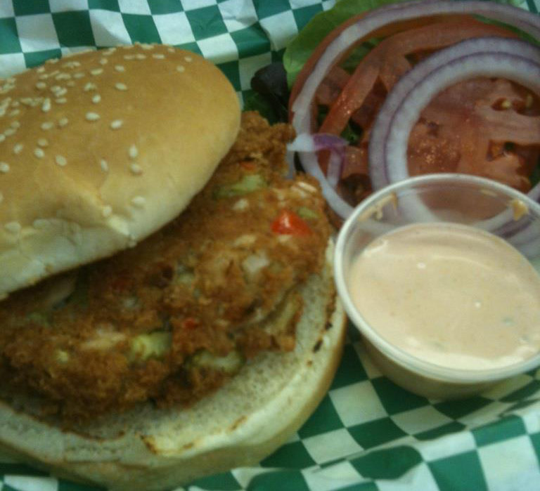 The Crabbie Patty Sandwich – faux crabcake made of jackfruit and described as “da Bomb!”
