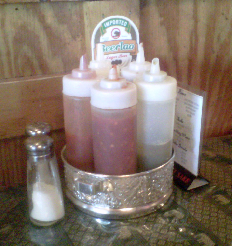 There are CONDIMENT TRAYS on the tables!!! I just love it when I can “adjust” things a little on my own.
