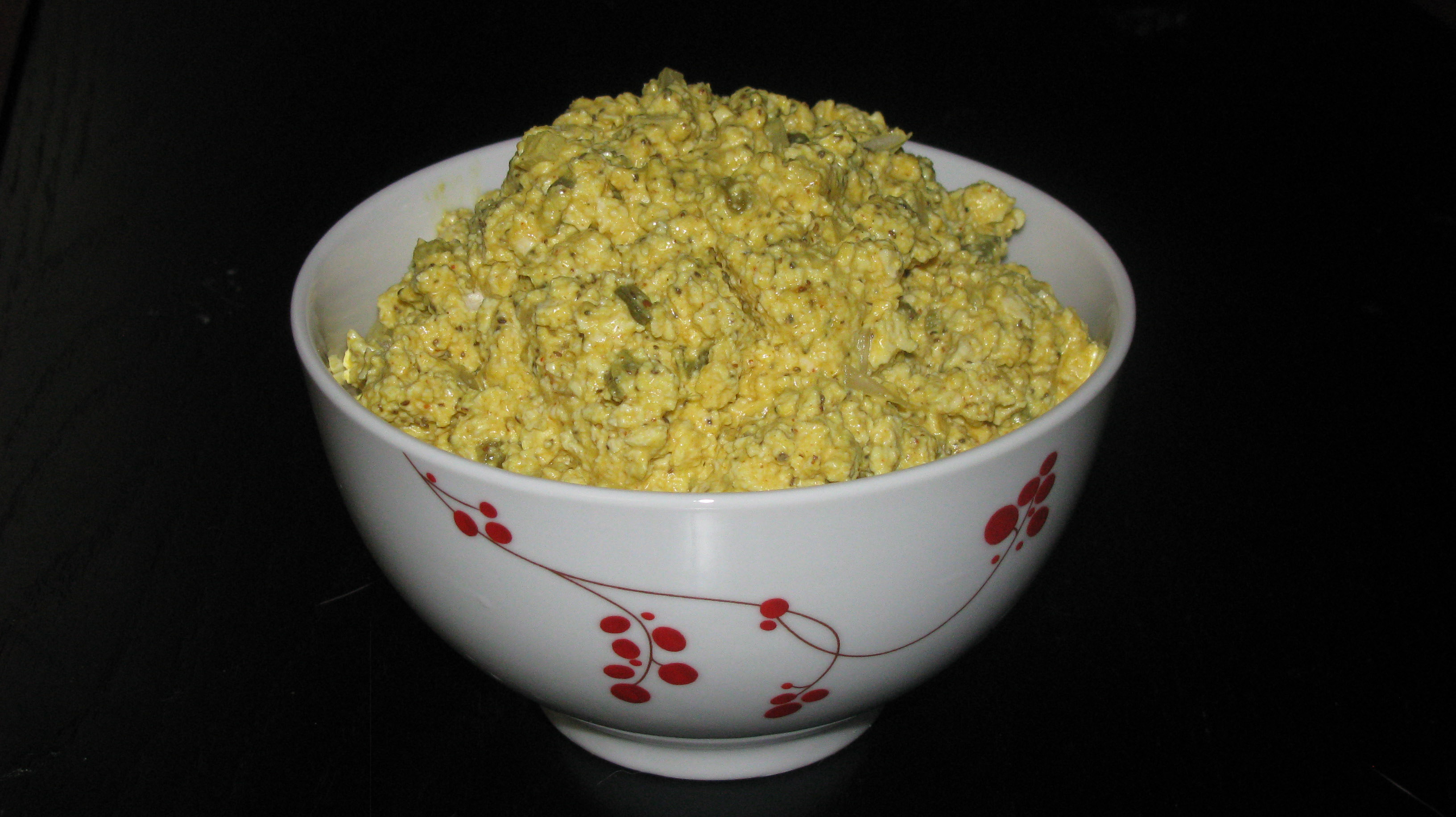 DO NOT TASTE THE EGG SALAD. Trust me on this one! Instead, put it into refrigerator to chill for several hours. The tofu really soaks up the flavor of the dressing and other ingredients if you give it some time to chill – it will taste completely different after two hours in the fridge.