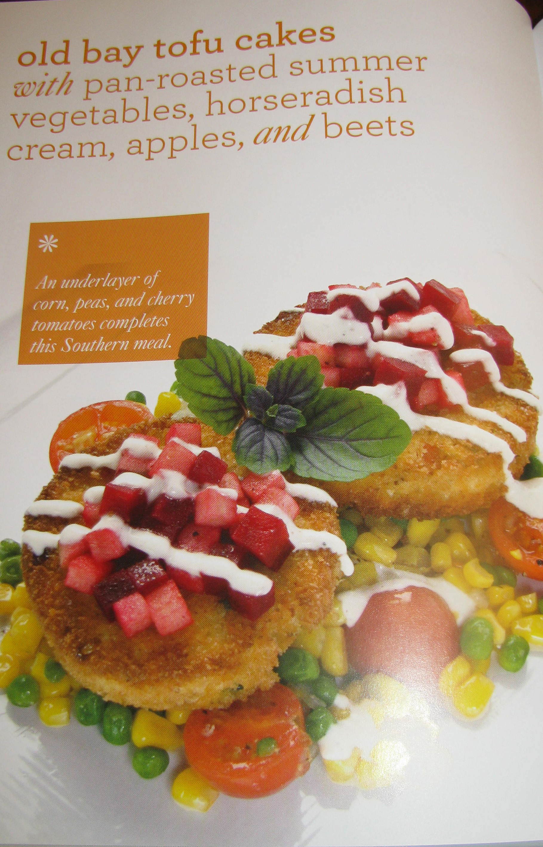 However, there are many recipes that don’t rely on commercial faux meat products – such as Old Bay Tofu Cakes, Peppercorn Encrusted Portabello Fillets, Tempeh Creole, Nori Dusted Oyster Mushrooms and Wine-Braised Artichoke Hearts, Agave-Lime Grilled Tofu, Whole Wheat Penne with San Marzano Tomatoes, and Asparagus and Meyer Lemon Risotto.