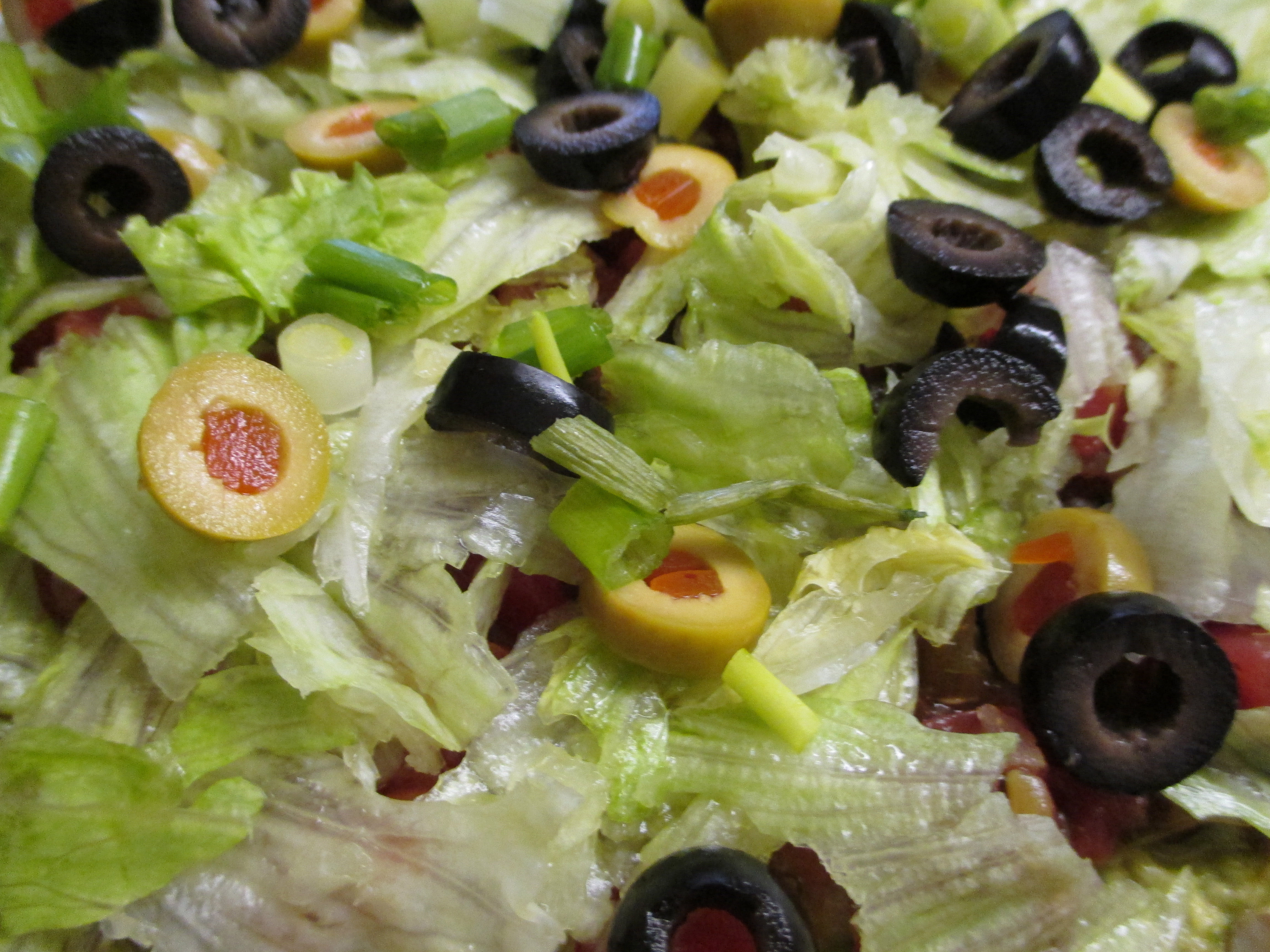 - Some like it hot. If you do, try mixing in a small can of diced green chili peppers into the sour cream mix, OR topping the lettuce with a fresh jalapeno slices, in addition to the olives and green onions.
