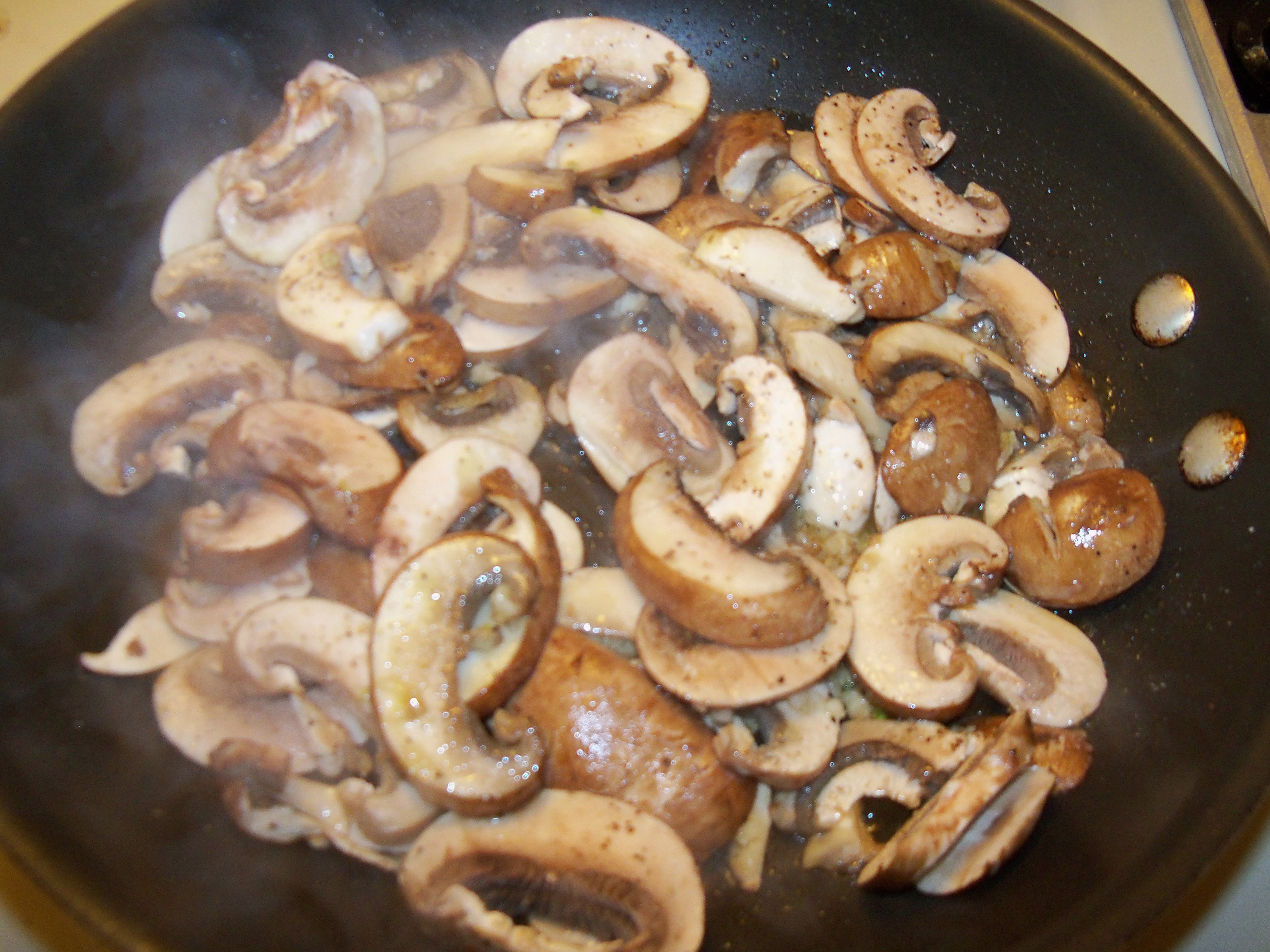 Melt the EarthBalance in small skillet. Add garlic, mushrooms, salt, and black pepper (freshly ground is best!) Add 1 tablespoon dry sherry. Saute for 3-5 minutes, until the mushrooms start to shrink and exude their juices. Avoid tasting at this point or you’ll wind up eating all the mushrooms! (Trust me, I’m not proud of it, but … errr … it can happen.)