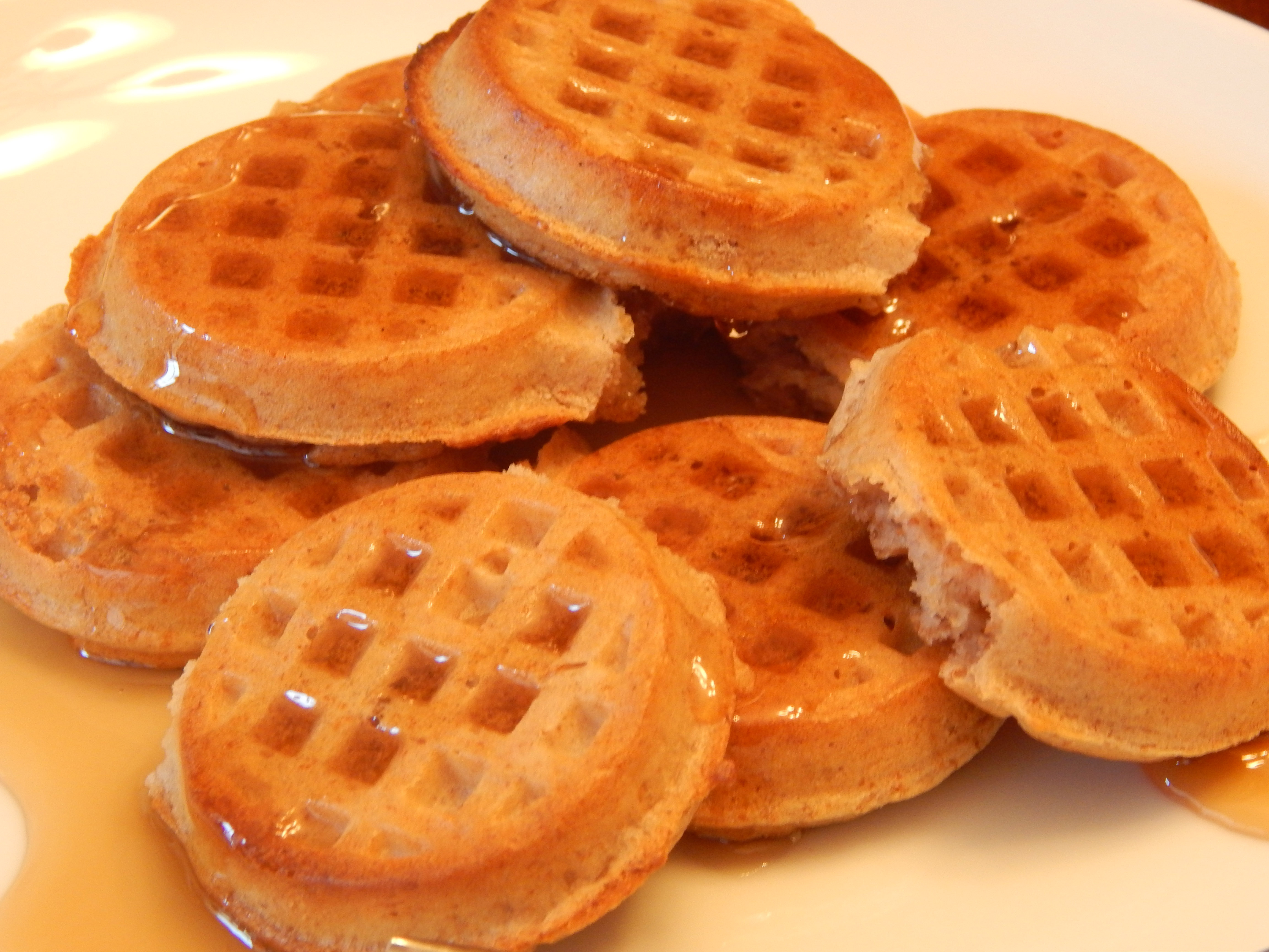 Here’s our latest find … Whole Foods 365 Everyday Value Organic Waffles. We discovered these by chance, as the front of the package is not marked “vegan,” “egg free,” or “dairy free.” Still, we hopefully pulled a package out of the store’s freezer to read the ingredients and discovered that these waffles were happily and unexpectedly vegan!