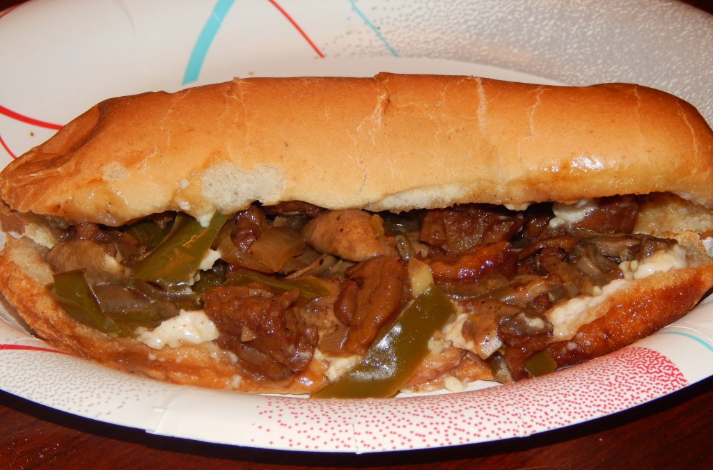 These places were known for “gourmet” sandwiches, and I wasn’t veg in my teens and twenties. So my lunch of choice was nearly always a Reuben (sold at Tuesdays for $2.25!) or some sort of a French Dip, grinder, or Philly Cheese Steak, preferably loaded with grilled onions, peppers, and mushrooms.