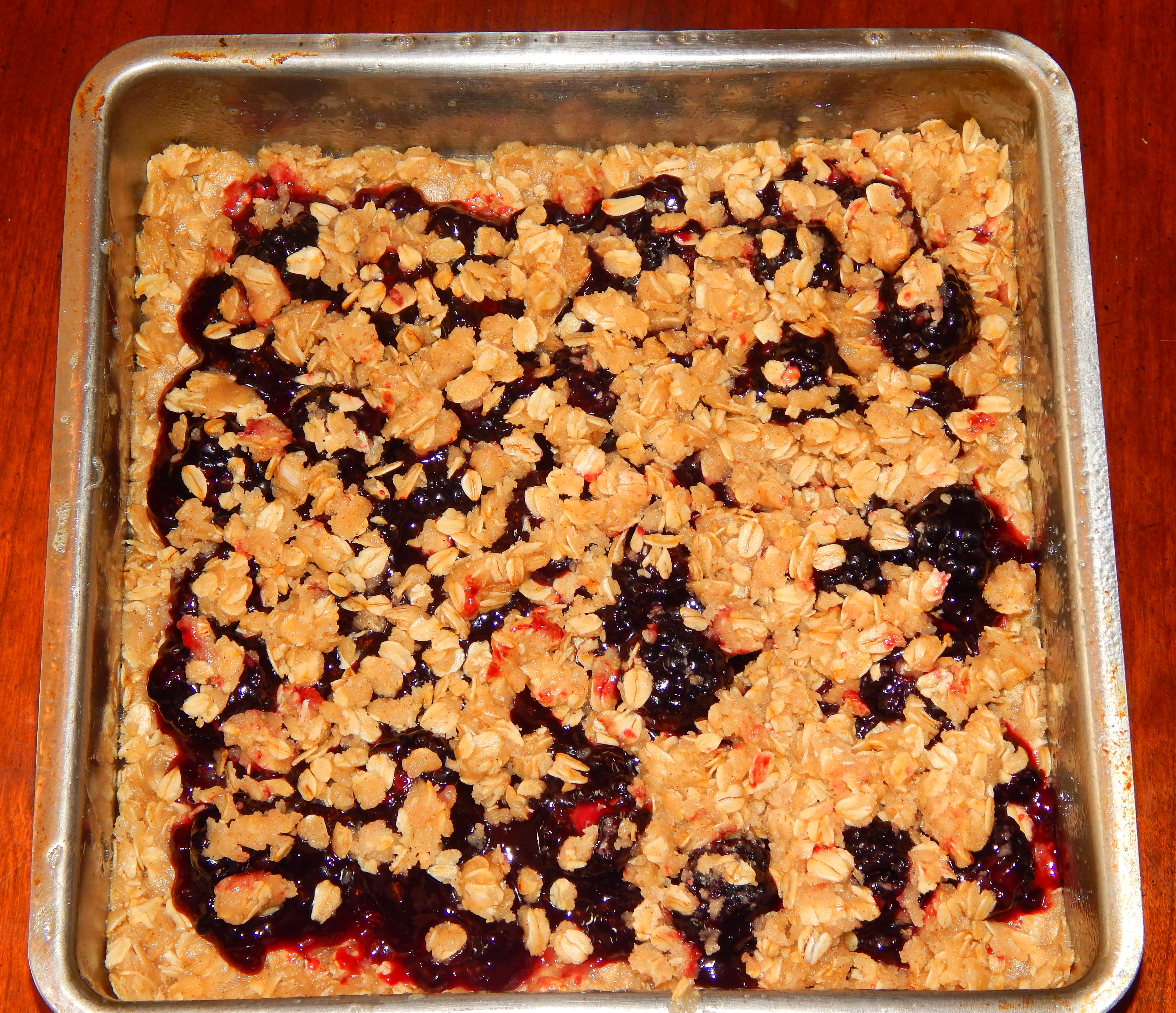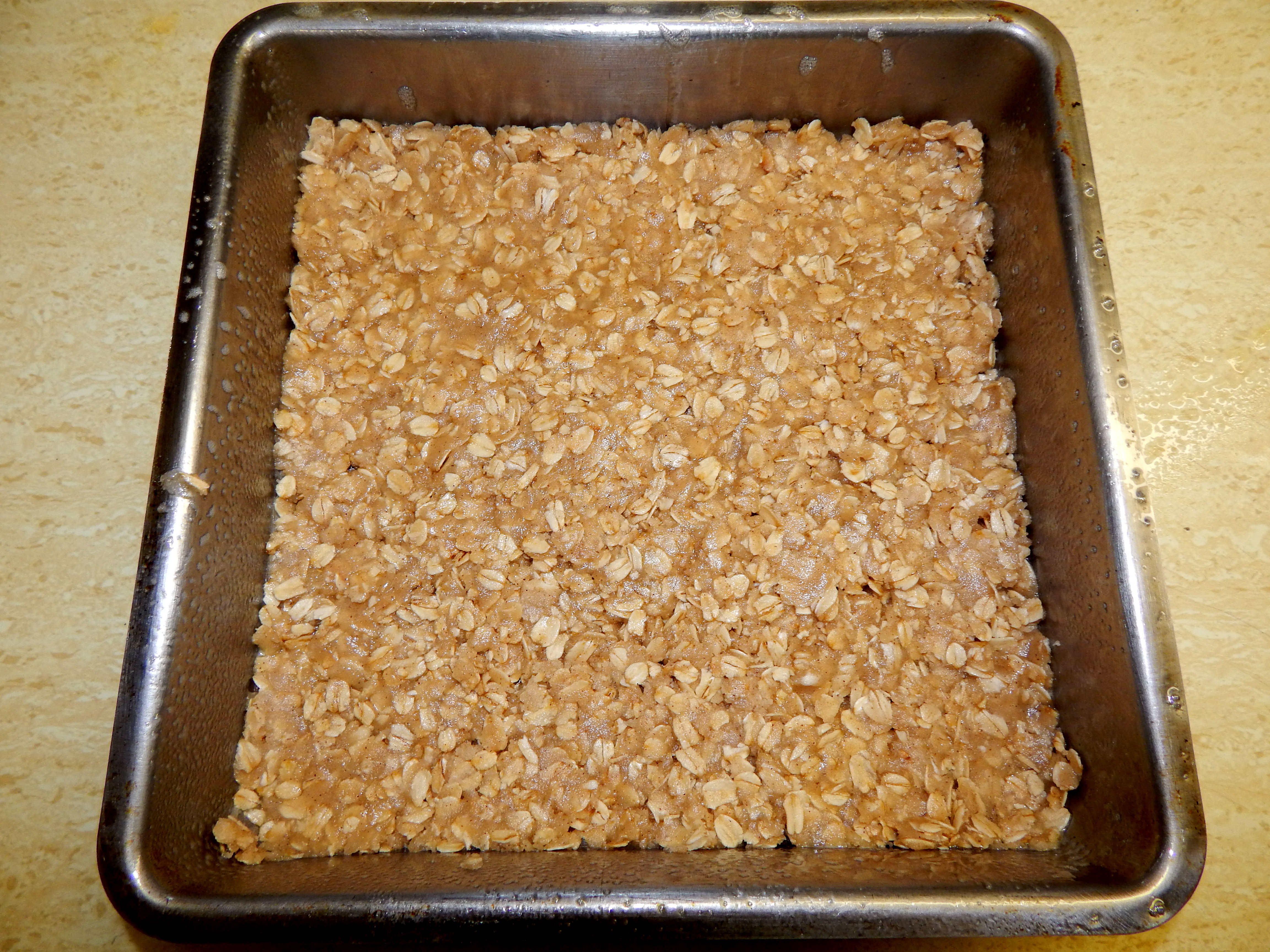 Sprinkle your remaining oat mixture on top. You’re just doing a “topping” now, not trying to create another crust layer.