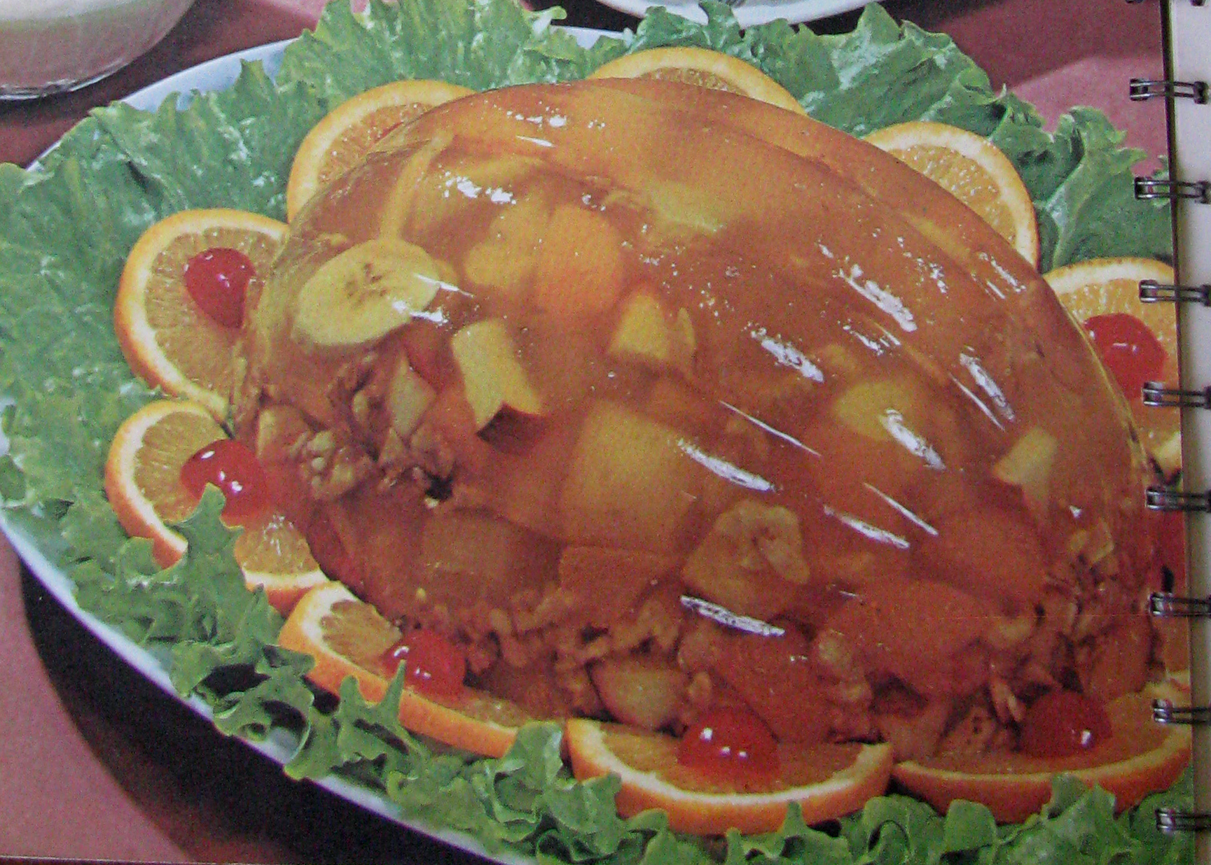 Baby Boomers experienced Jell-O at the height of its popularity – when young mothers were first being introduced to the joy and convenience of TV dinners and canned and packaged foods. Jell-O was a novelty, something fast and fun. Women impressed their family and friends (or at least confounded them) by making “Jell-O Salads” and “Jell-O Molds” consisting of fruit, vegetables, cottage cheese, or even meats like ham and shrimp suspended inside a block of red, green, or yellow wiggly, jiggly stuff.