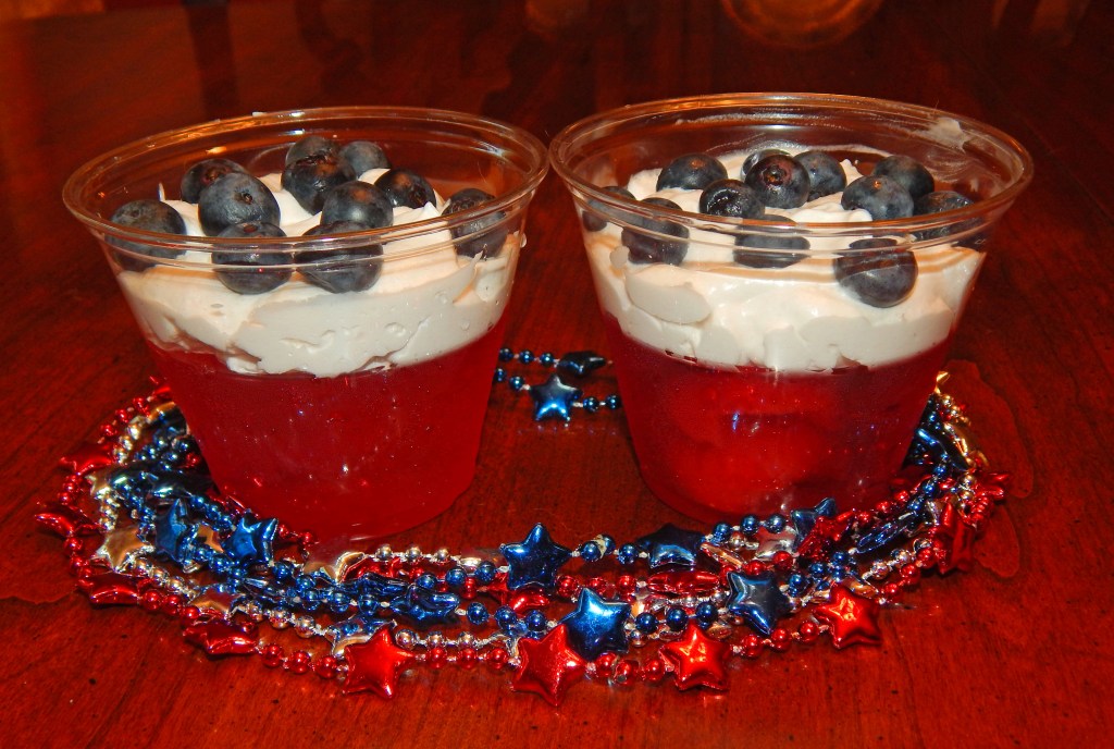 In memory of those long-ago childhood Fourth-of-Julys filled with running barefoot, catching fireflies, watching fireworks, getting “et alive by mosquitoes,” and eating wiggly, jiggly desserts – here’s a vegan, gluten free Patriotic Parfait. Enjoy and reclaim a tiny piece of your childhood.