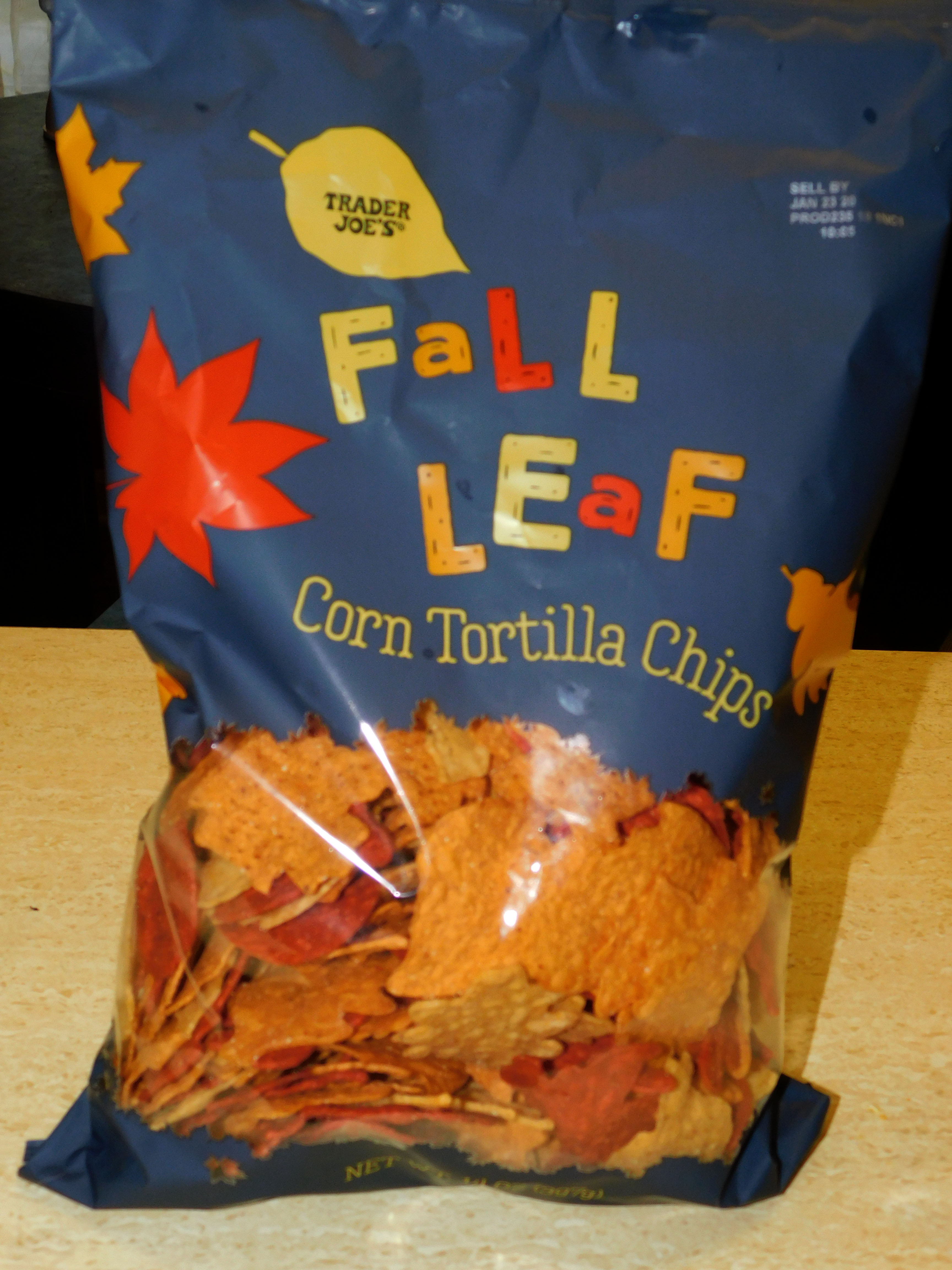 Fall Leaf Corn Tortilla Chips – These are beautiful leaf-shaped chips in autumnal shades of yellow, orange, and red.