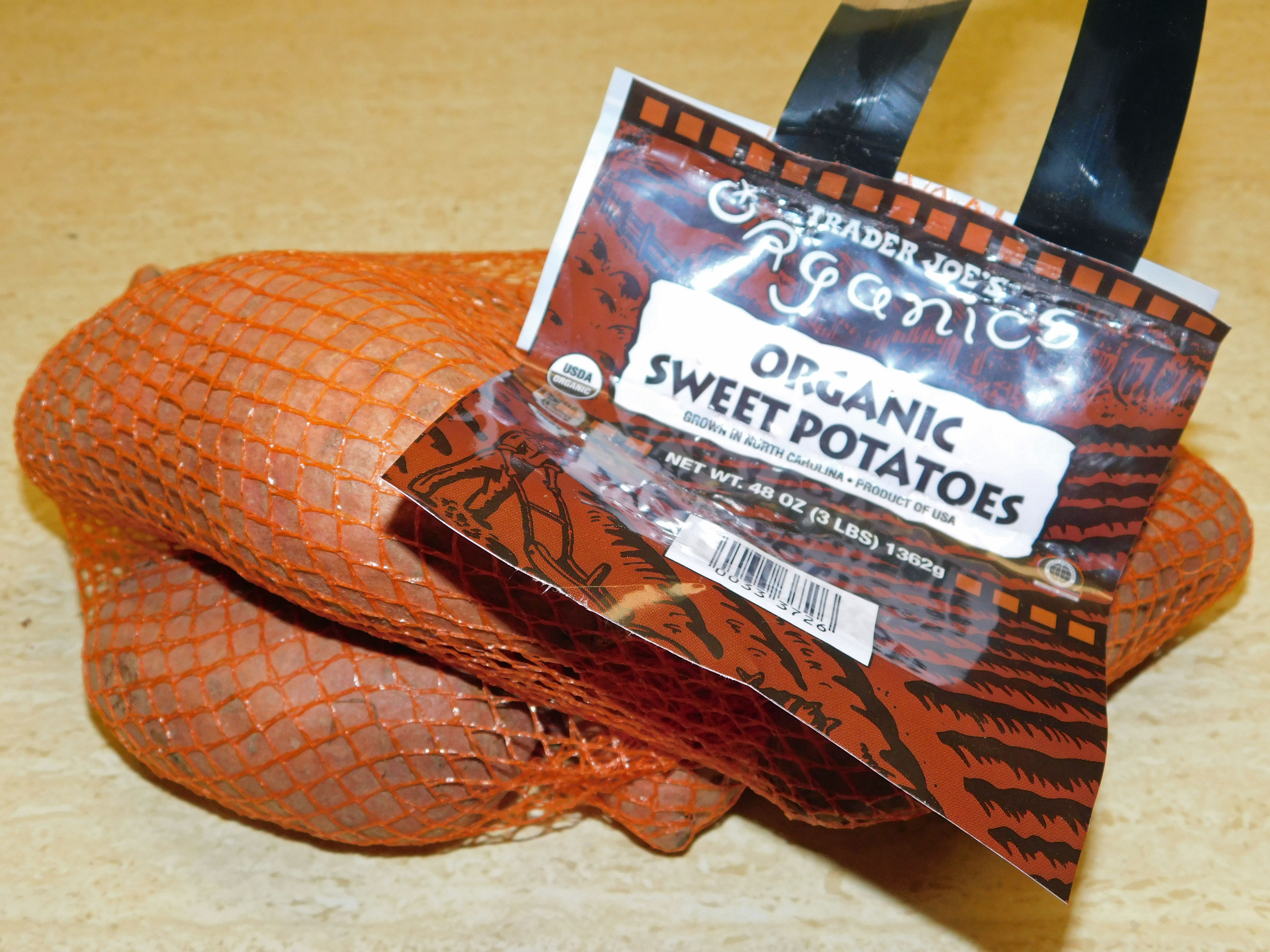 Organic Sweet Potatoes. OK, non-organic sweet potatoes are actually pretty safe to eat – but if I can buy organic produce, and it’s reasonably priced, I do so. Trader Joe’s is one of the few places I can find bagged, regular-sized organic sweet potatoes. (Most loose sweet potatoes tend to be ginormous; most bagged sweet potatoes tend to be tiny.) Sweet potatoes are a mainstay during the Autumn and Winter months – there isn’t a cheaper, easier, faster, more satisfying dinner than canned beans with vidalia onion, a mess of doctored up frozen greens, a baked sweet potato, and a pan of cornbread. Here’s how to make perfect baked sweet potatoes. And here’s a few ways to top them.