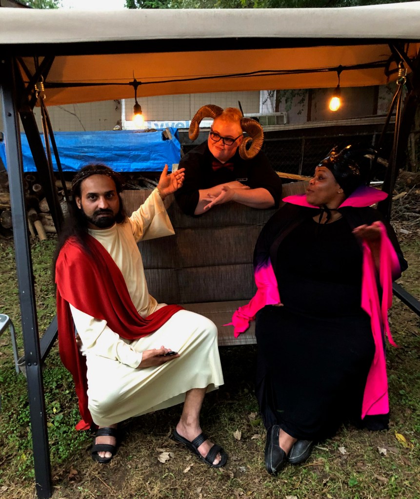 A FB friendship began, and I encouraged KD to come to a VegCharlotte meetup. We met at Fern – along with this weird, wonderful dude Rob (who also, coincidentally, loves Halloween and costumes). The three of us instantly became lifelong friends.