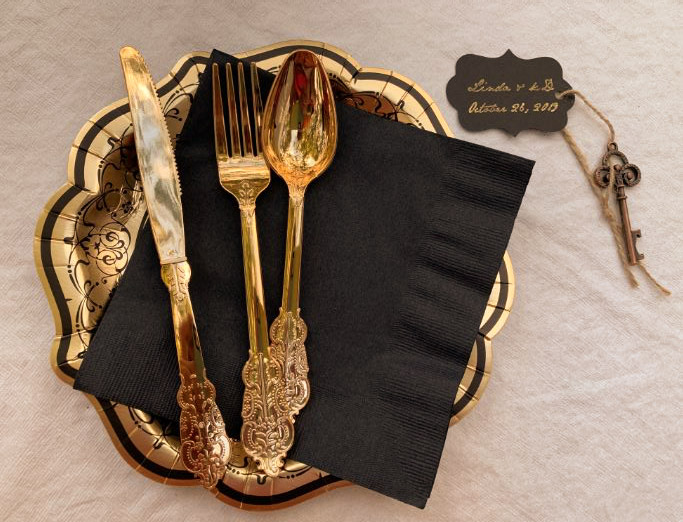 This was the tableware … disposable but oh so pretty. Which finally brings us to … THE FOOD!