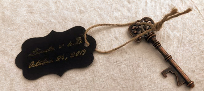 KD and Linda nailed the decorations! It was a backyard wedding – simple, rustic, elegant, beautiful. More magical, fairy tale Halloween than creepy or gory – appropriate since there were children involved. Such as the little “spider boy” who walked down the aisle in front of the bride. Instead of scattering petals, he pelted the guests with spiders! (Tiny, glow-in-the-dark, plastic spiders, that is – the party would definitely gotten a LOT livelier if the spiders had been real.)