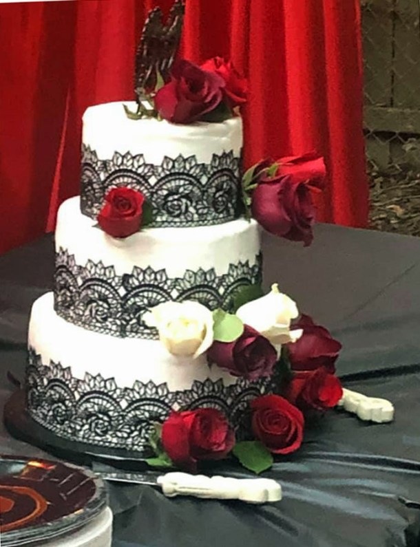 And – did you notice how the black lace on the cake matched the lace on Linda’s skirt?