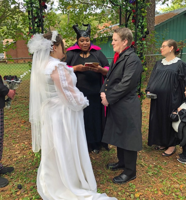 Maleficent (a.k.a. Maria the Goddess in real life) presided over the vows. These two weren’t taking any chances, though. They also had a judge overseeing everything, and a blessing from Jesus (a notorious party crasher and photo bomber).