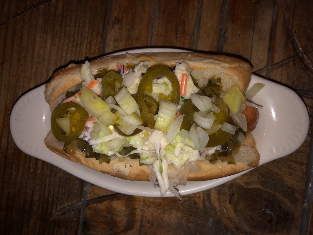 First, A.’s hot dog – the “Shelia” – $4.99. He said it was good, but nothing spectacular. The standard vegan hot dog with toppings omni restaurants have as their token vegan offering. Hot dogs do not come with a side.
