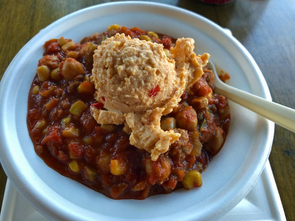 The mac and cheese is good. The chili is really good. Together, they were AMAZING! Plus, the chips were on top, so they didn’t get soggy. And, for some reason, in this instance, the vegan pimento cheese worked. Maybe because it had some noodles to melt into, and some crunchy chips to eat it with.