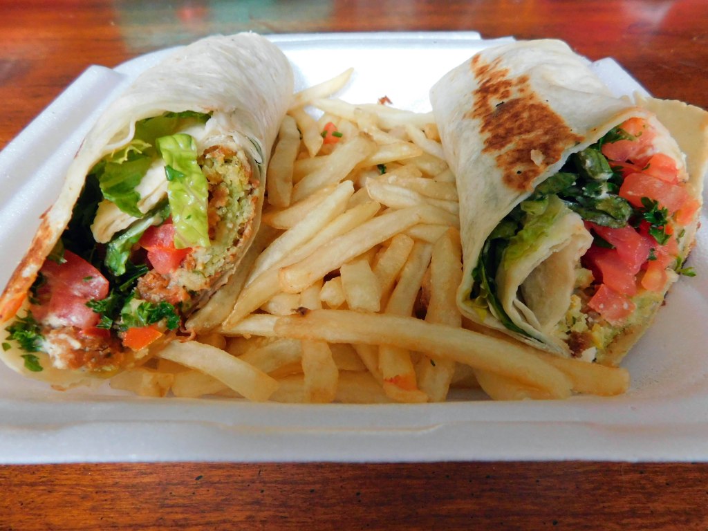 For $5.49, you get what some places try to pass off as TWO falafel wraps!