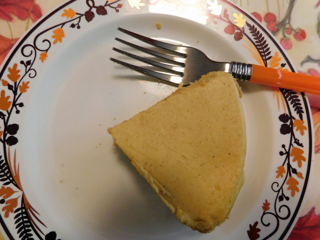 My only complaint is that the cheezecakes are rather small. If you slice them as you would normally slice a cake or pie, you wind up with teeny tiny pieces. And, while the thawing directions suggest you slice into 4-6 equal slices, the nutrition information on the box lists a serving size as 1/3 of the cheezecake! It’s hard to cut a cheezecake equally into thirds. Plus, it looks weird. Below, you can see what “one serving/one third of the cheezecake” looks like.