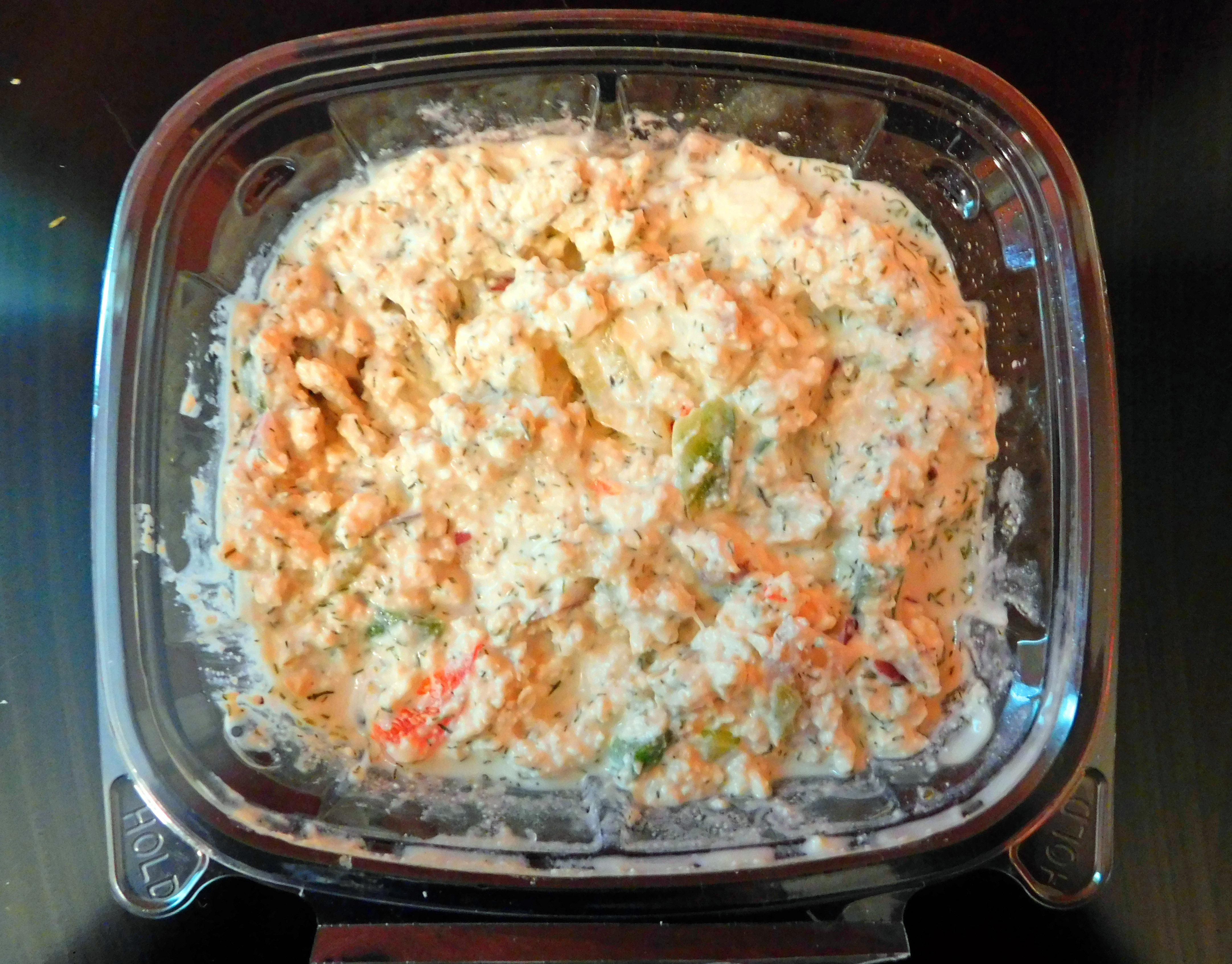 One of their earliest vegan offerings was the CM “Chickenless” Salad. Made old school style, with smoked tofu and vegan mayo and tons of onions and celery. We all fell in love – this was something new and novel 18 years ago! Years passed, chicken substitutes became a “thing” – the CM’s Chickenless Salad still kept a nostalgic place in our hearts. Today it has also found new fans, many of whom are looking for less processed “meat” substitutes (tofu or tempeh instead of highly processed “meat” amalgams).