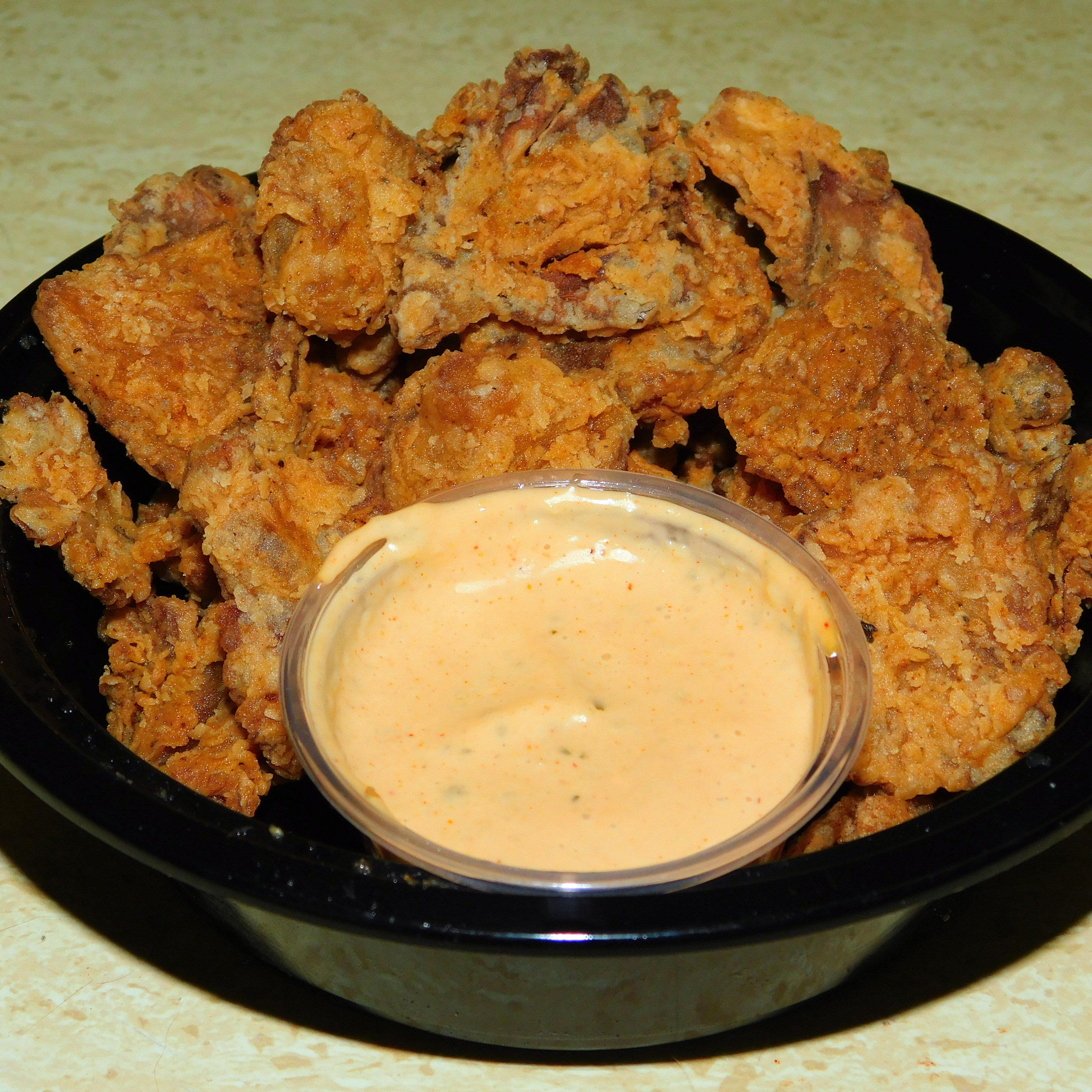 Our favorite chicken-y mushrooms? Dee’s Vegan To Go Oyster Mushroom Bites.