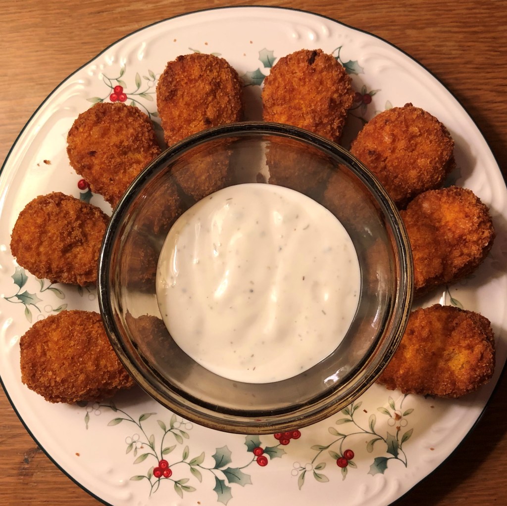 But they tried and they liked. What’s not to like? The breading is zesty and there’s not too much of it. The meat is chicken-y but not too terribly realistic. Best of all, if you’re feeding a crowd you can purchase bags of approximately 15 bite sized nuggets for around $4-5, compared to roughly $9-10 for a bag from one of the Big Three. A bottle of Follow Your Heart Bleu Cheese dressing sells for around $5-6. If you really want to splurge, you can mix some of Follow Your Heart Bleu Cheese crumbles into the dressing.