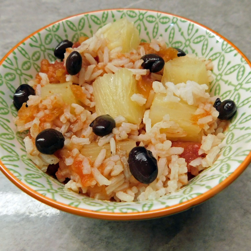 • Add a tablespoon or two of jarred pineapple salsa and mix well with the rice. You don’t want a large quantity of salsa – just enough to tinge all the rice pink.