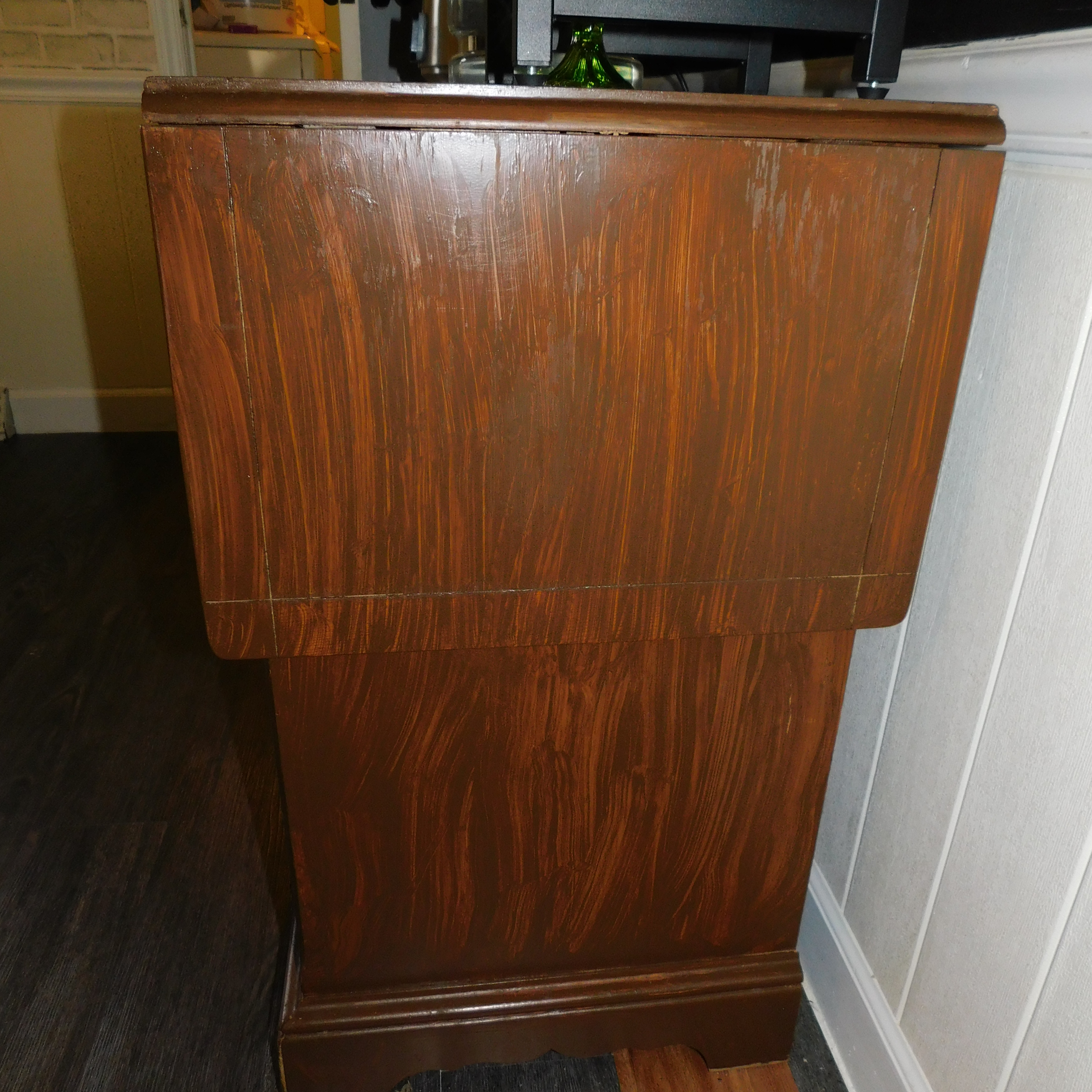 My “Hydration Station” adds personality to the room and has effortlessly increased my water intake, AND was made from “about to be tossed” furniture. An unexpected bonus – my kitchen/breakfast area is small. Having something tall that fills the space against the wall brings the eye up and makes the room feel bigger – more so than just hanging a picture.