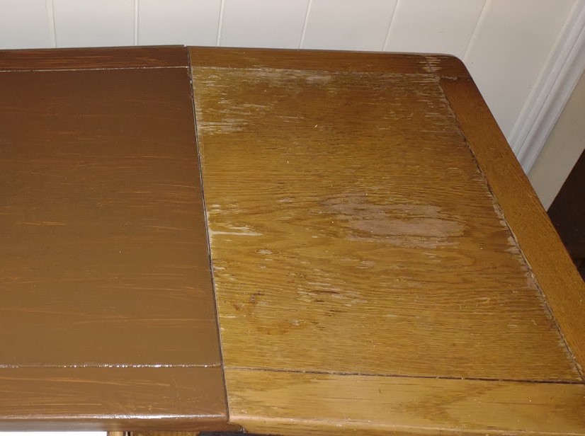 Next, I lightly refinished the hutch. It had definitely seen better days (and better decades).