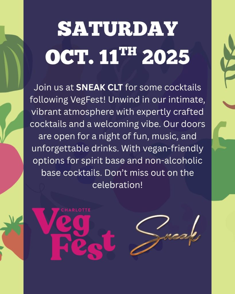 Looking for something to do AFTER VegFest? Try Sneak CLT, which has both alcoholic and nonalcoholic cocktails! (See how easy Sober October can be?)