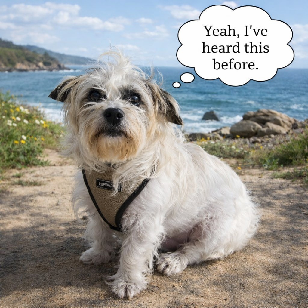 So I go cane free and wind up doing a lurching choreography in my kitchen. Three limps to the right, to the right, to the right … shuffle to the left, to the left, to the left …